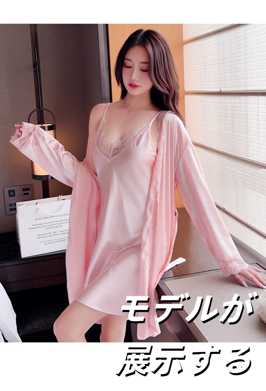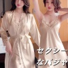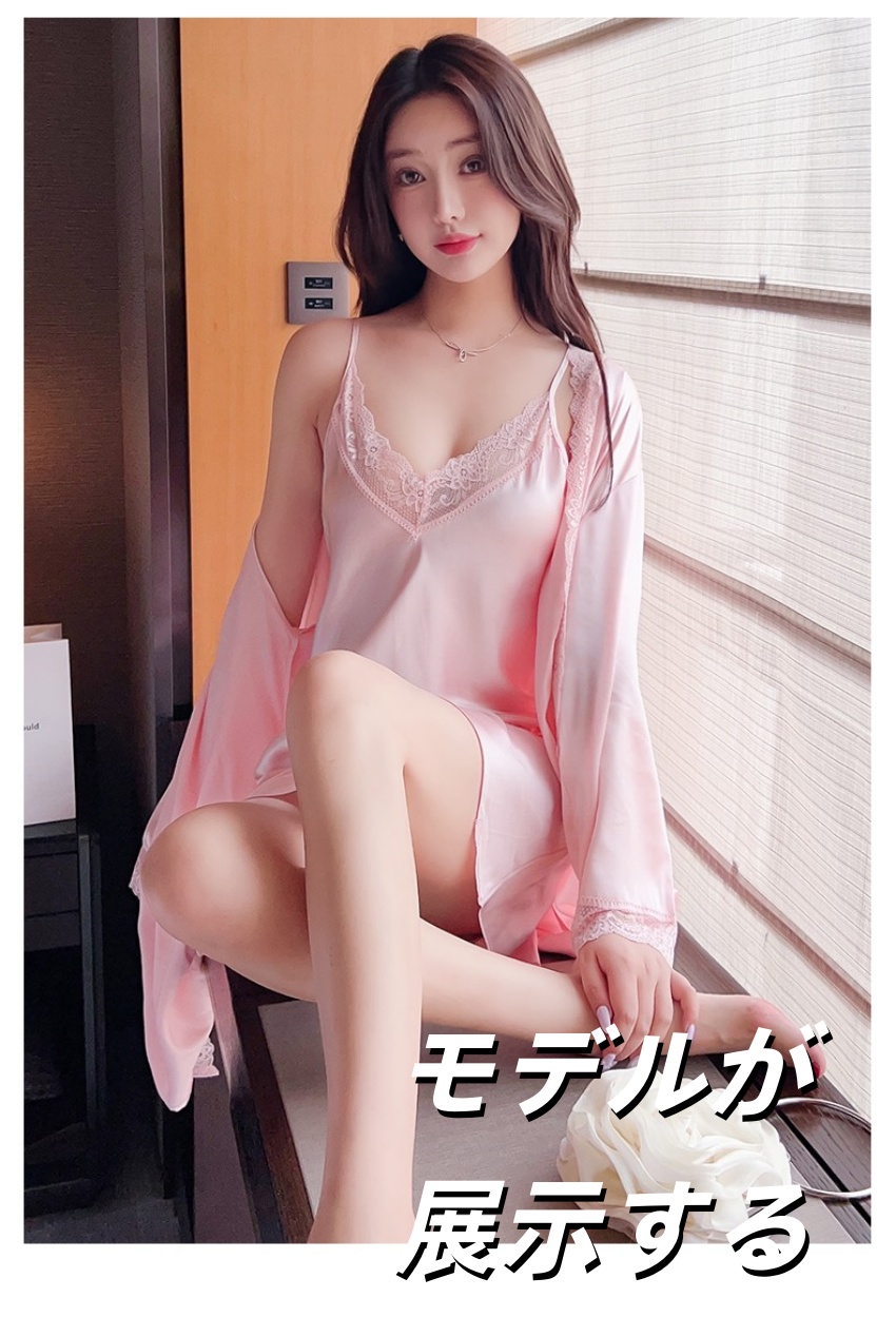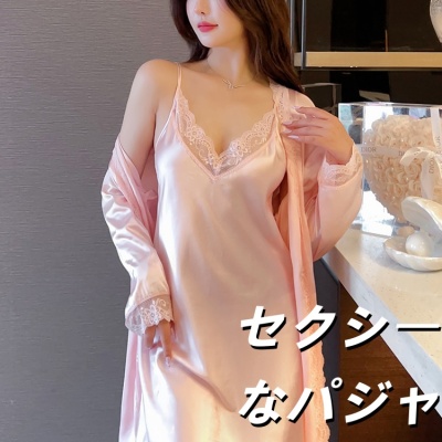 2025新しいナイトガウン女薄款性感冰丝バスローブ纯欲风高级感レース吊带睡衣