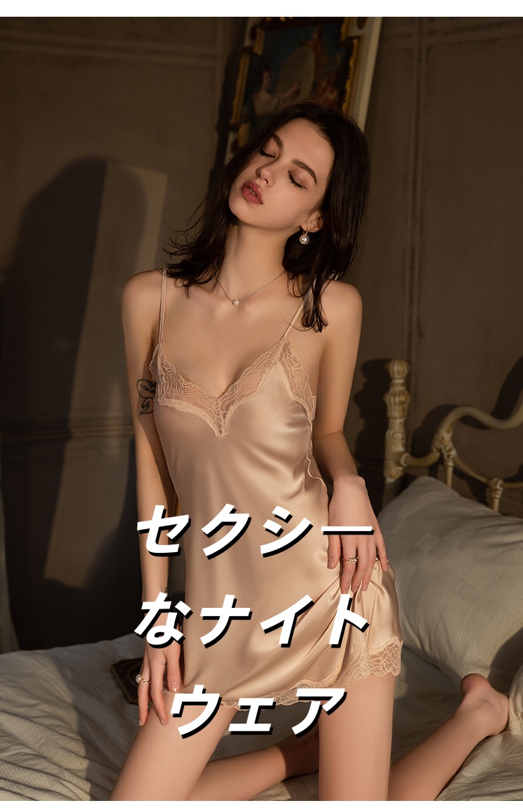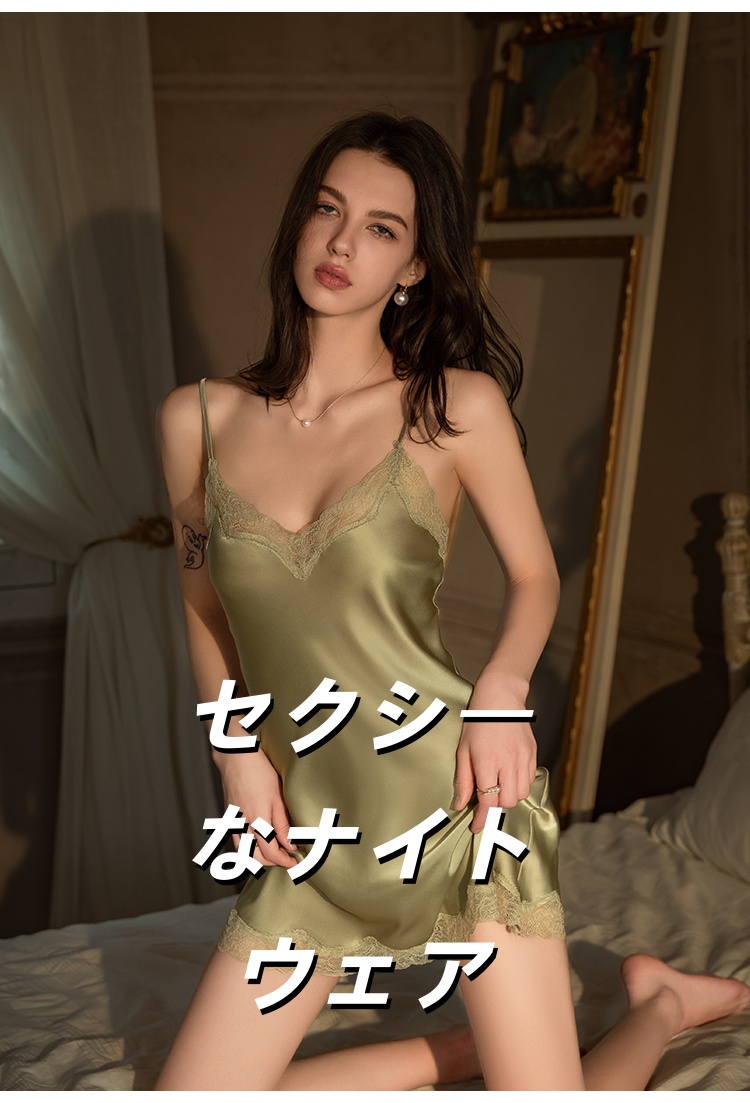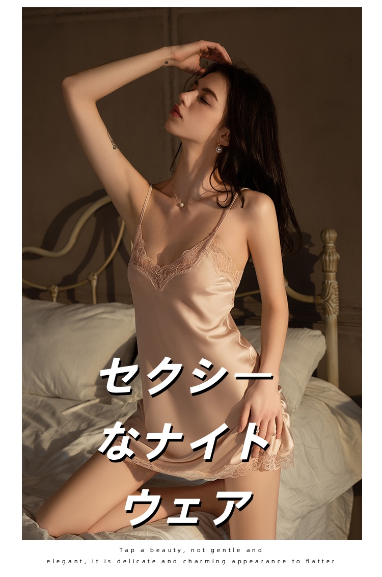 新款女セクシーなパジャマ真丝蕾丝花边吊带睡裙冰丝家居服純欲風純欲風天