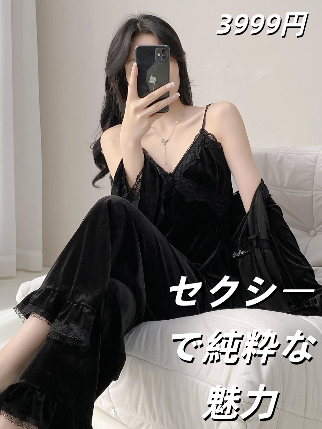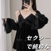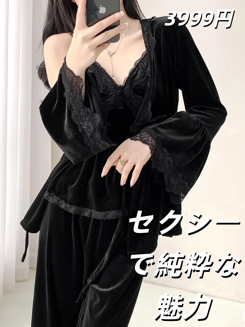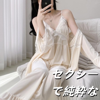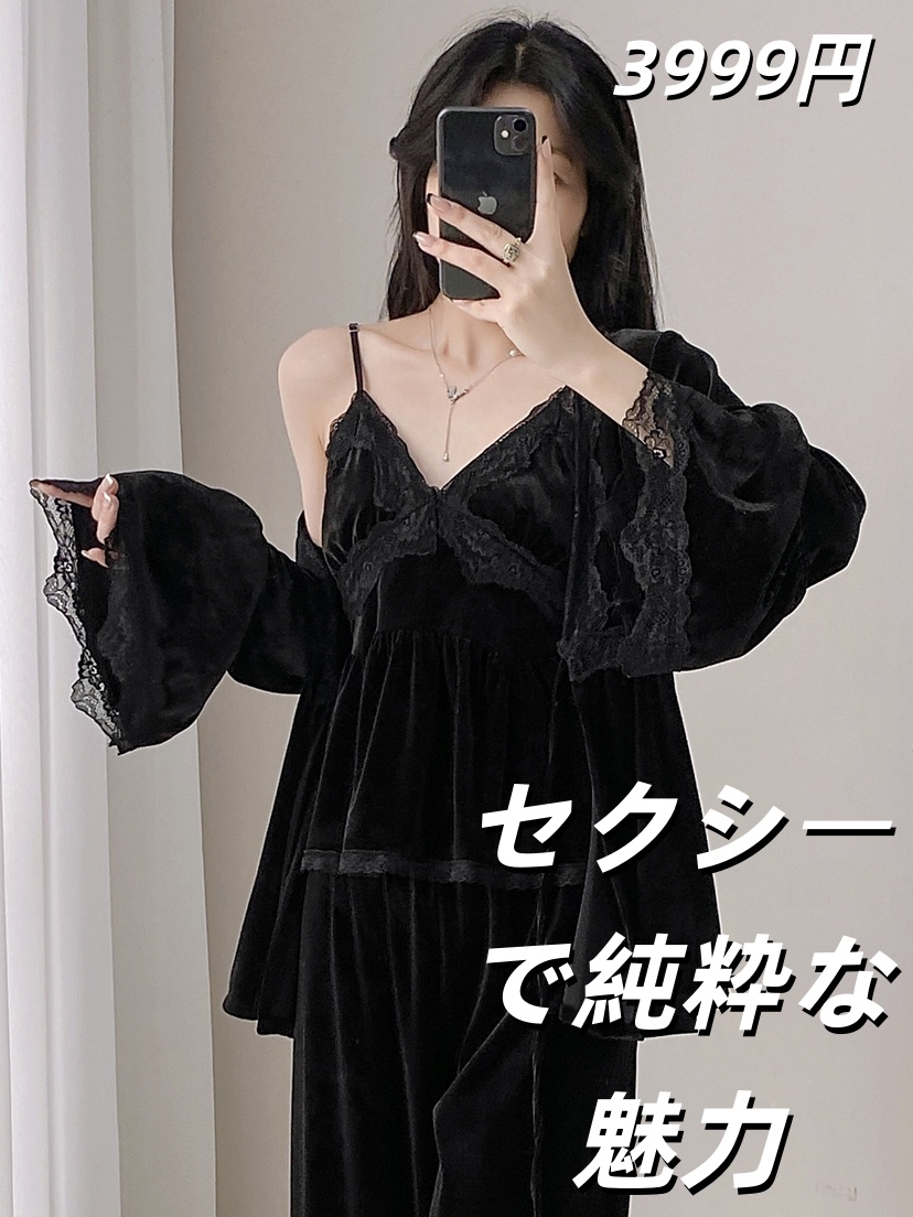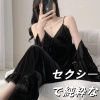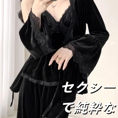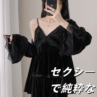 明星同款金丝绒睡衣女セクシーで純粋な魅力2025秋冬新款长袖吊带家居服三件套