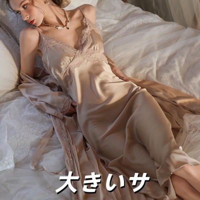 セクシーなキャミソール睡衣女春秋夏冰丝加长薄手家居服性感纯欲新款高级感睡裙