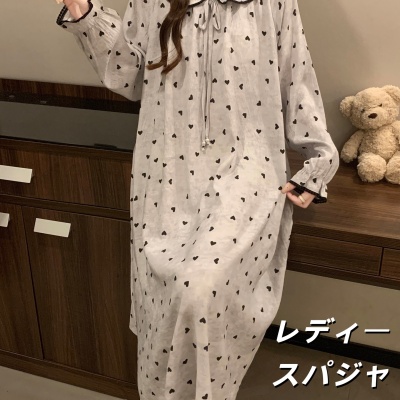 お姫様風睡衣女春秋款带胸垫可爱凯蒂猫小个子长袖睡裙秋冬季家居服