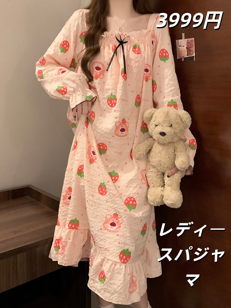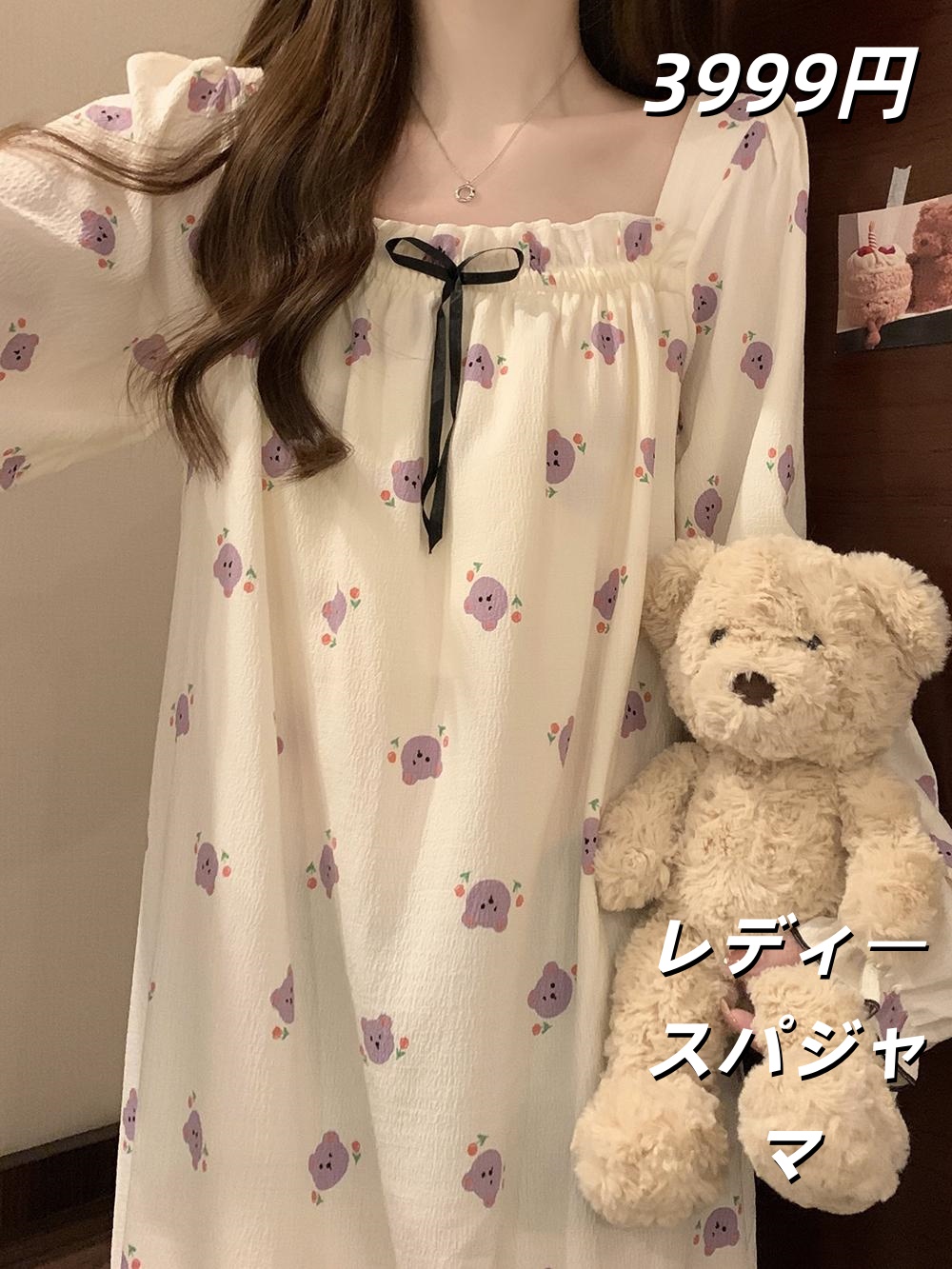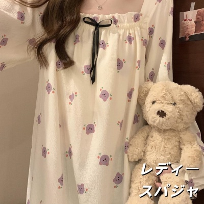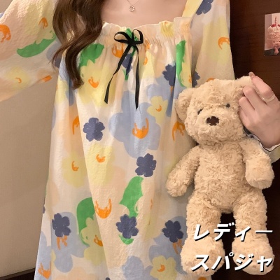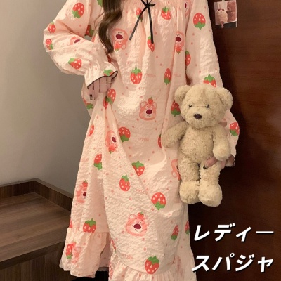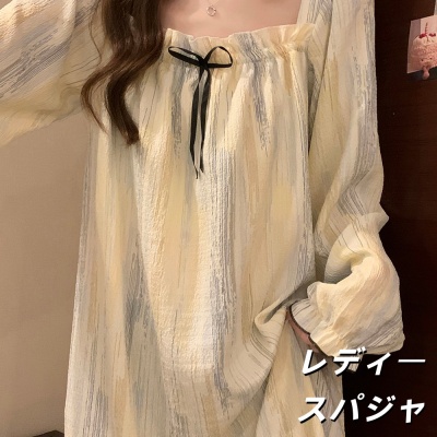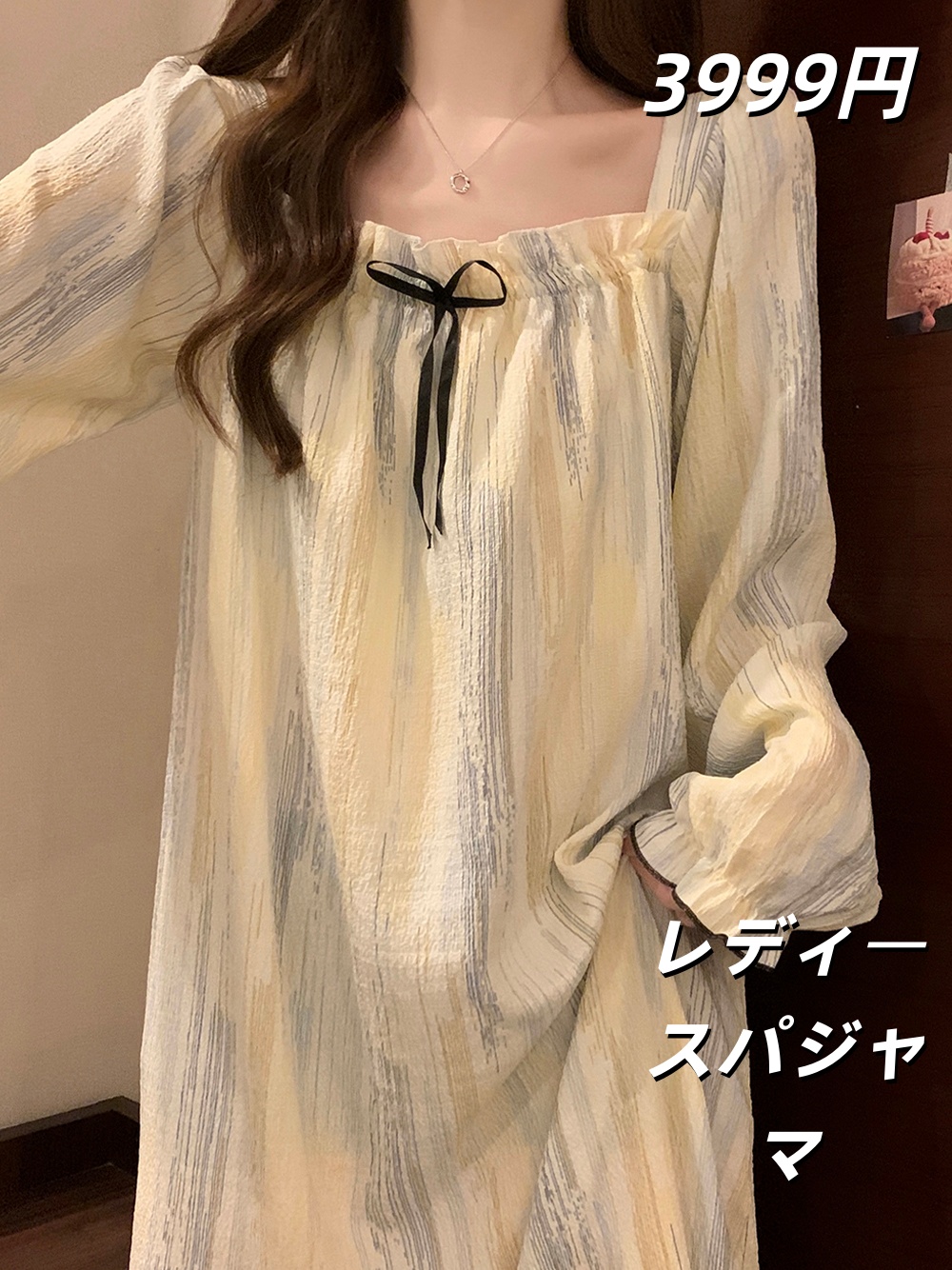 長袖スリープドレス女春秋季带胸垫睡衣女夏天2025新款棉纱秋冬款条纹家居服