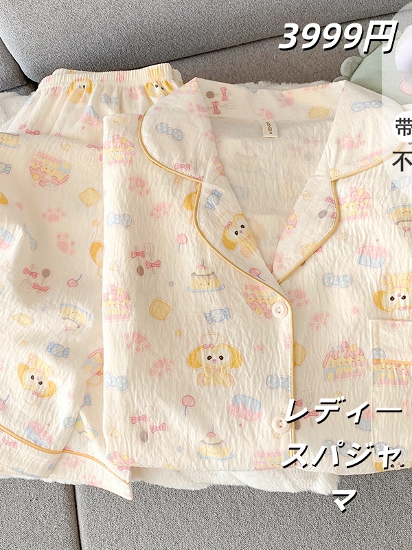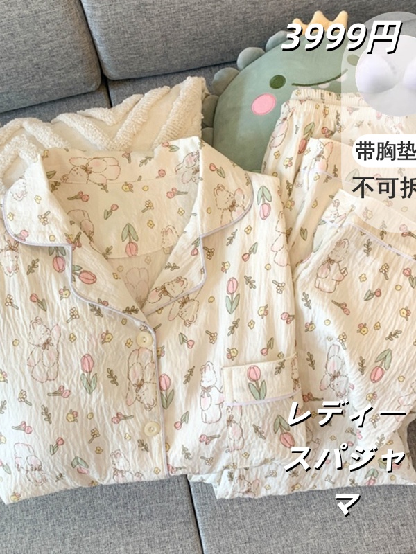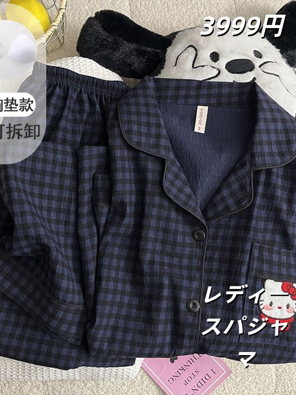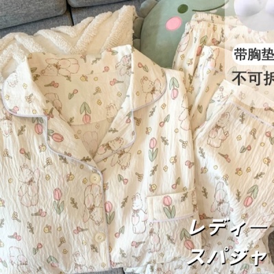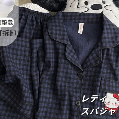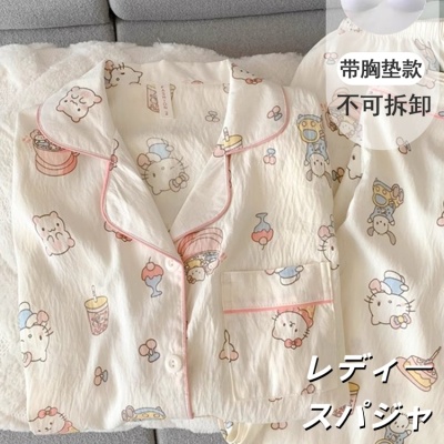 雲纯棉纱带胸垫睡衣女款春秋季かわいい卡通HelloKitty长袖家居服夏