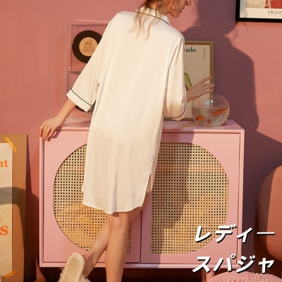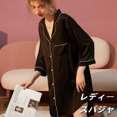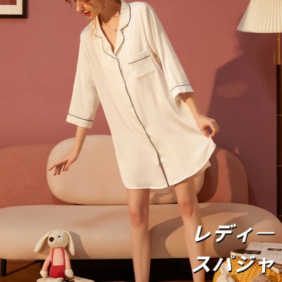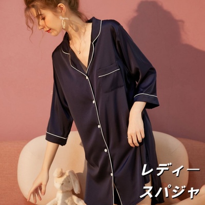 桑シルク睡衣女2025年新款春夏真丝男友风衬衫睡裙ゆったり家居服可外穿