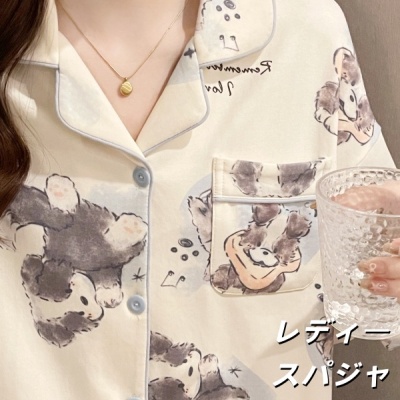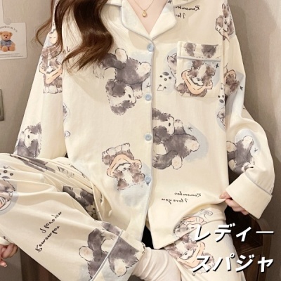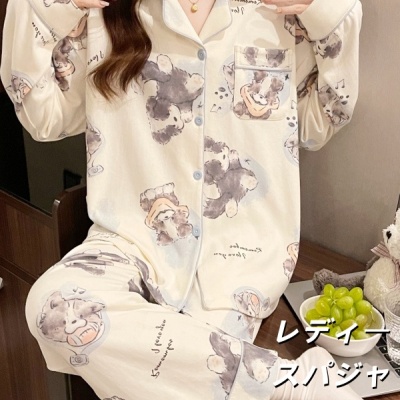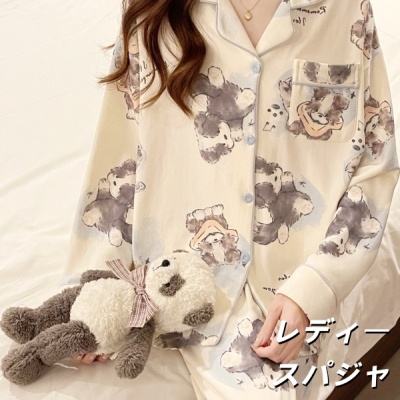 2025年新款女士睡衣春秋季綿100%长袖长裤套装かわいい子犬家居服可外穿