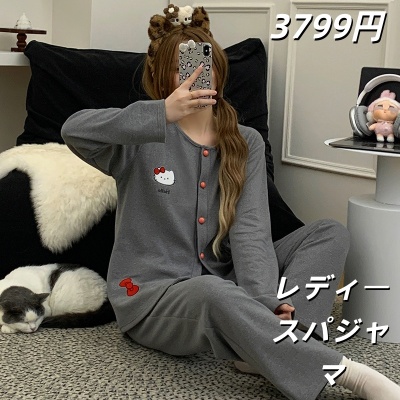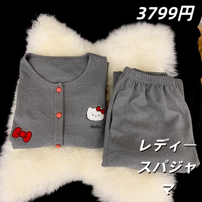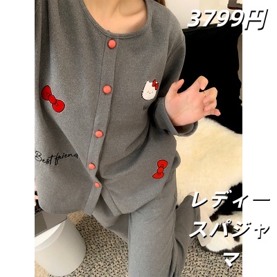 冬季新款カシミヤ厚手舒适可爱长袖长裤公主风卡通家居服套装