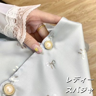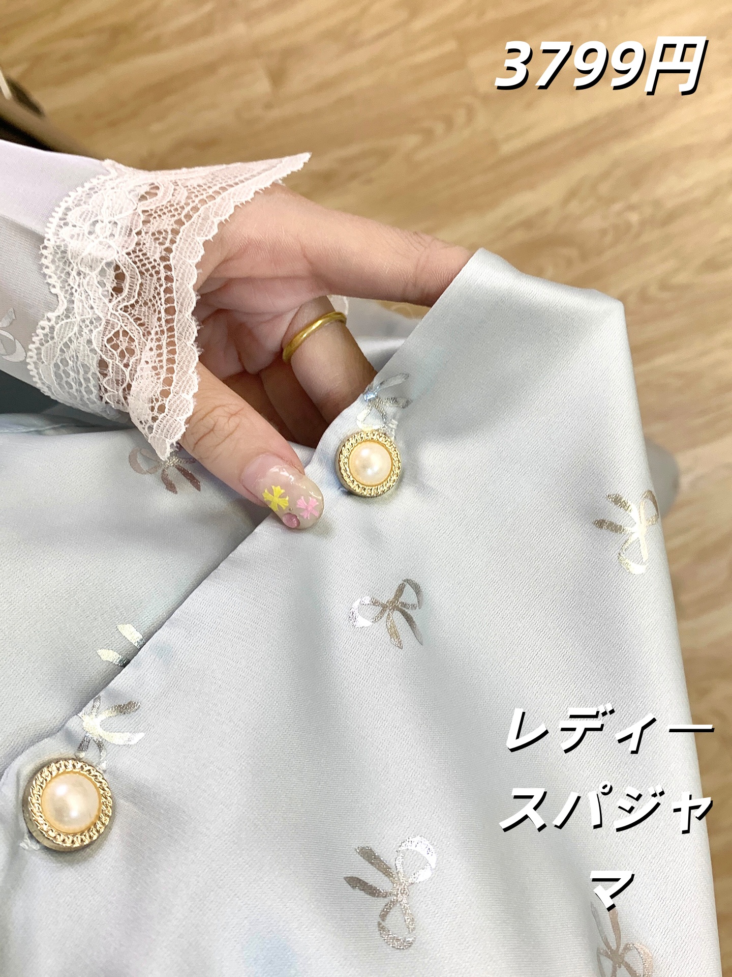 高級感のあるパジャマ女春秋季冰雪丝薄款长袖长裤蕾丝边蝴蝶结带胸垫家居服