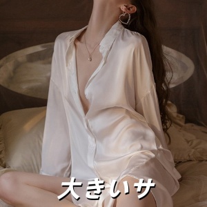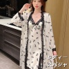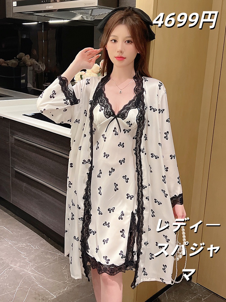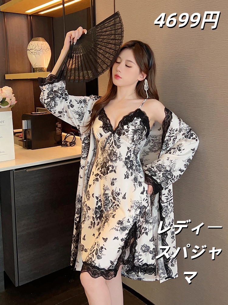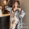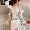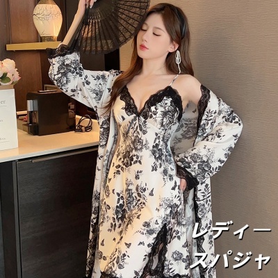 パジャマの女性春秋性感高级感夏季冰丝绸蕾丝吊带胸垫睡裙长袖睡袍两件套
